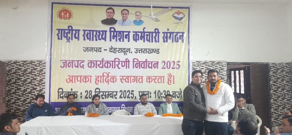 आज दिनांक 28.12.2025 को जैन धर्मशाला देहरादून में जिला कार्यकारिणी राष्ट्रीय स्वास्थ्य मिशन की नई कार्यकारिणी का गठन किया गया जिसमें महावीर सिंह राणा और अमन वशिष्ठ अध्यक्ष पद पर दावेदार थे जिसमे महावीर राणा जी ने अंतिम समय में अपना समर्थन अमन वशिष्ट को दे दिया और अमन वशिष्ठ अध्यक्ष पद पर निर्विरोध चुने गए उपाध्यक्ष पद पर पुरुष मोर्चा में अनुज जैन निर्विरोध उपाध्यक्ष चुने गए वहीं महिला मोर्चा उपाध्यक्ष पद पर शिवानी गोदियाल और आरती शर्मा प्रत्याशी थे जिस में टोटल 103 वोट पड़े जिसमे से 40 वोट आरती शर्मा को और 63 वोट शिवानी गोदियाल को पड़े और जिस में शिवानी गोदियाल महिला मोर्चा में 26 वोट से विजय हुई
